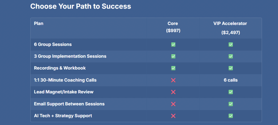 Build trust-based intake processes and structured coaching journeys that deliver consistent results and create delighted, referring clients.
